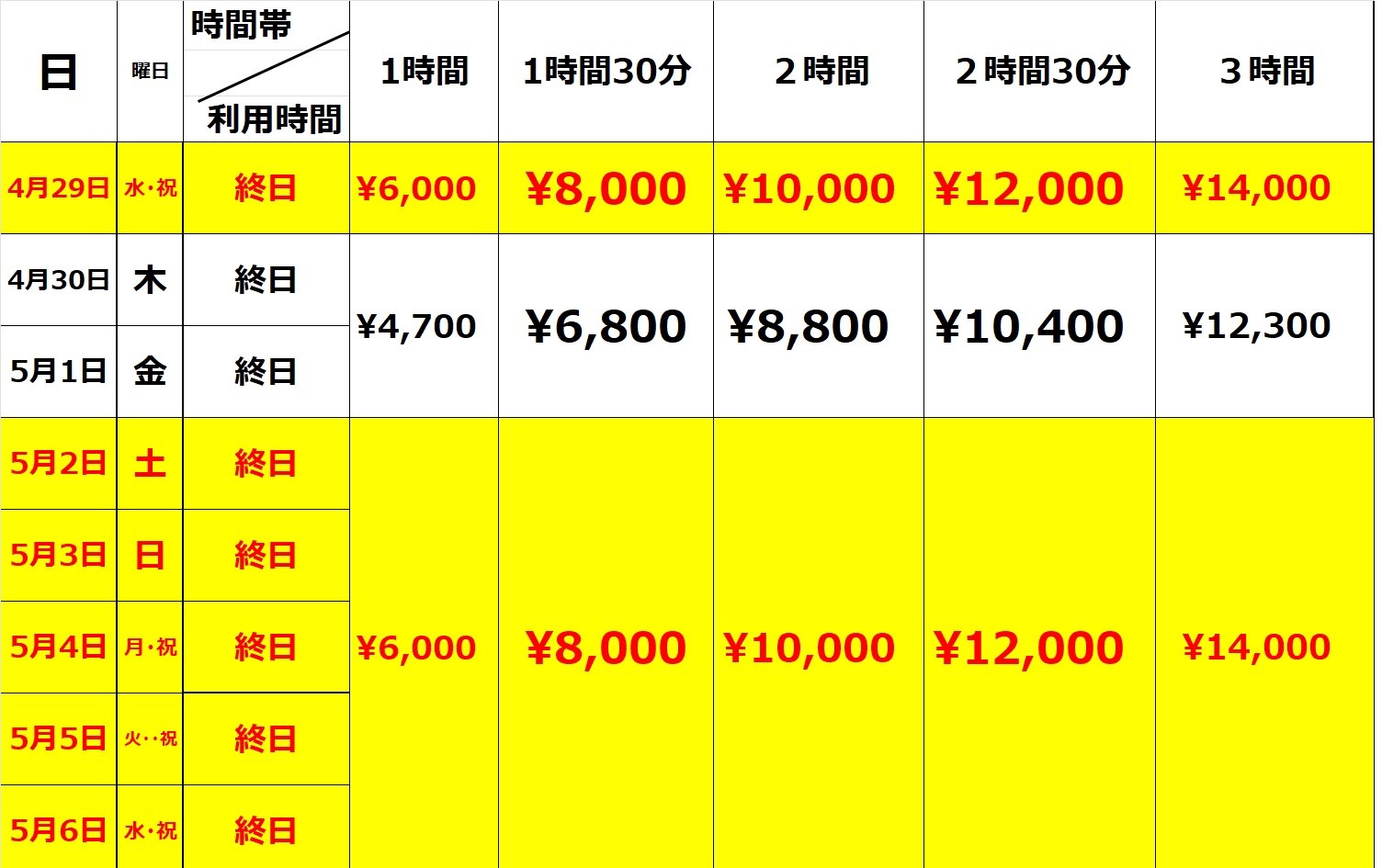 ゴールデンウイークにおける団体予約の料金体系についてのご案内